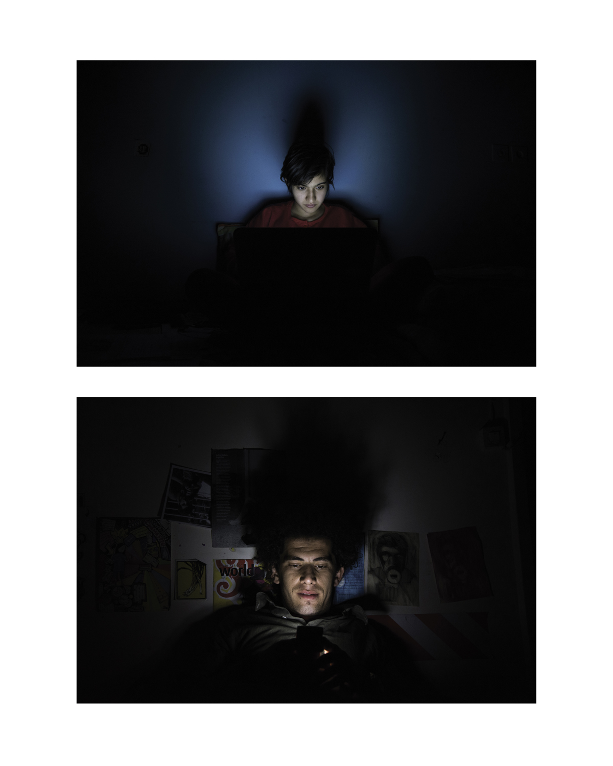Nowadays, we all spend a large part of our spare time, solitude and happiness with our laptops, Tablets and Mobiles. This light is our companion in every second of our life. The dark atmosphere of photos is a mul- tiple emphasis on this occurrence, on this life and moments that their sole companion is this light.